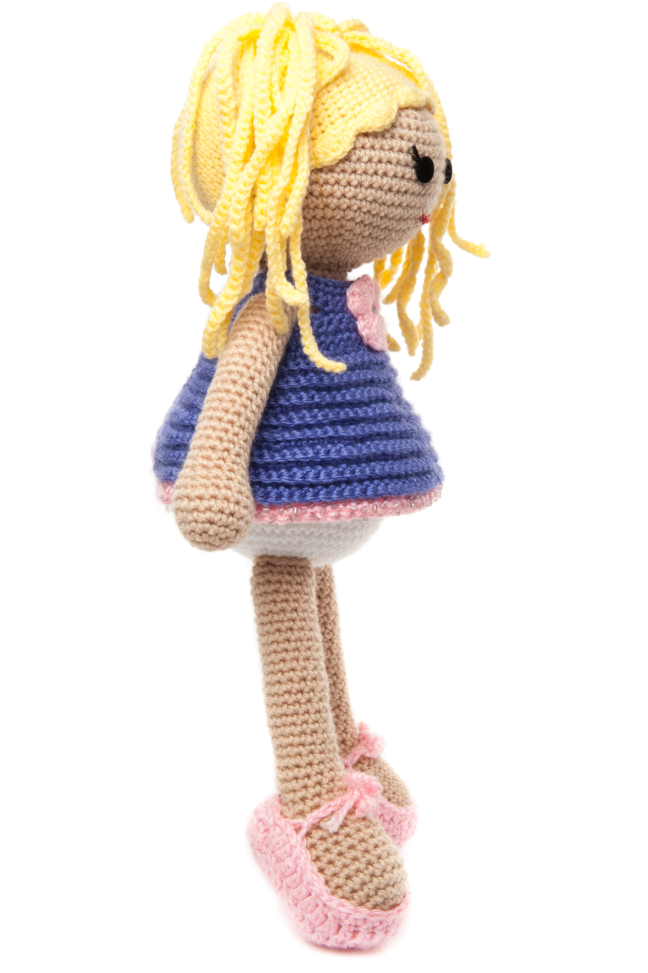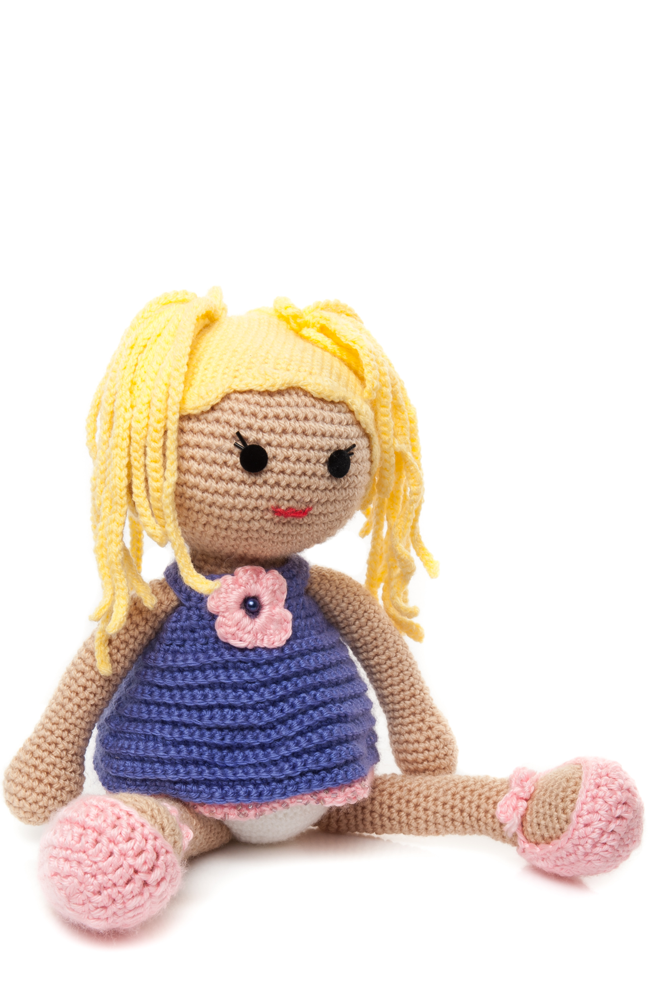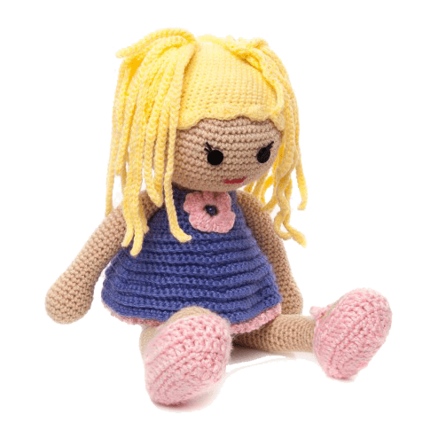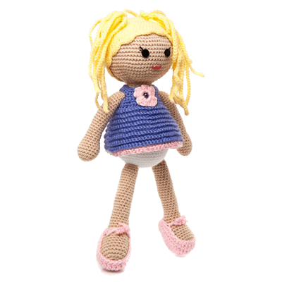 Maruca este o păpușa blondă croșetată manual, o jucărie recomandată copiilor cu vârsta peste 3 ani.